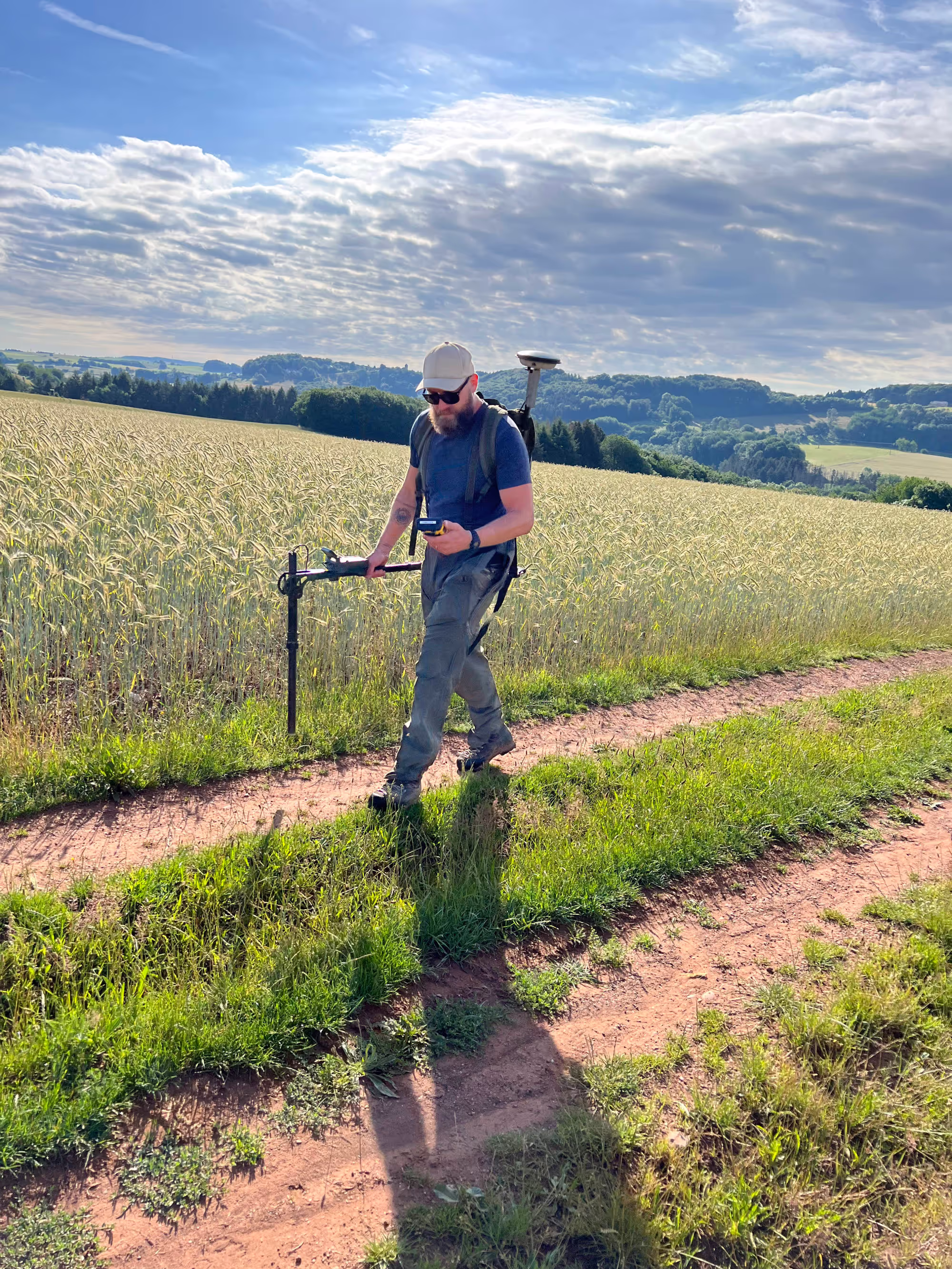 Mehrkanal-Messwagen (4-16 Kanal), welcher auf kleinen Flächen händisch gezogen, oder für große Flächen in Verbindung mit einem Quat oder PKW eingesetzt werden kann.